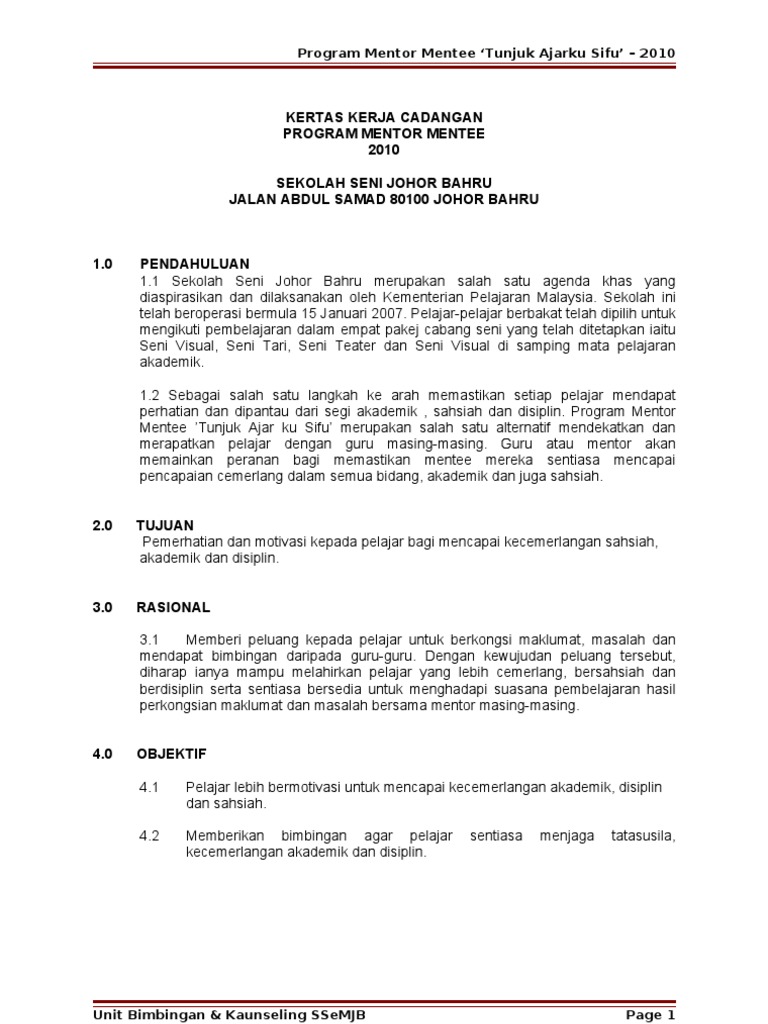 Antara blok A dan B sekolah. Malaysia Bilangan 3 Tahun 2013 berkaitan dengan Panduan Pelaksanaan Program Mentor-Mentee Di Sekolah program ini adalah untuk memperkukuhkan Amalan Guru Penyayang. Panduan Pelaksanaan dan Modul Program Mentor Mentee Di Sekolah.